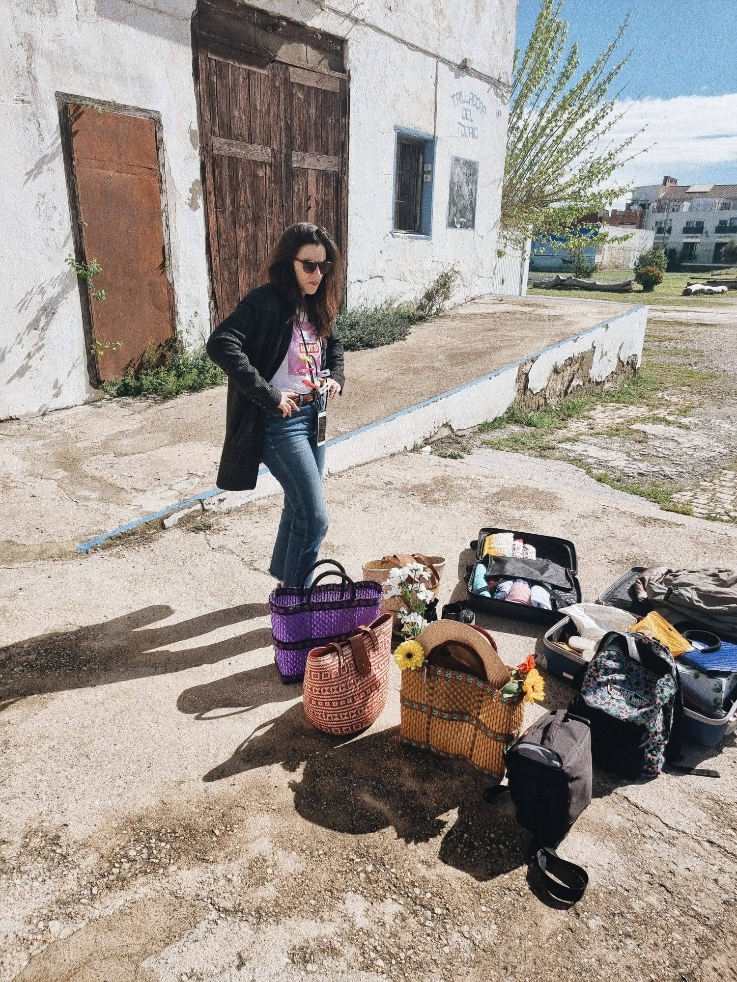 Ordenando los looks para la sesión de CYCLO en un Airbnb